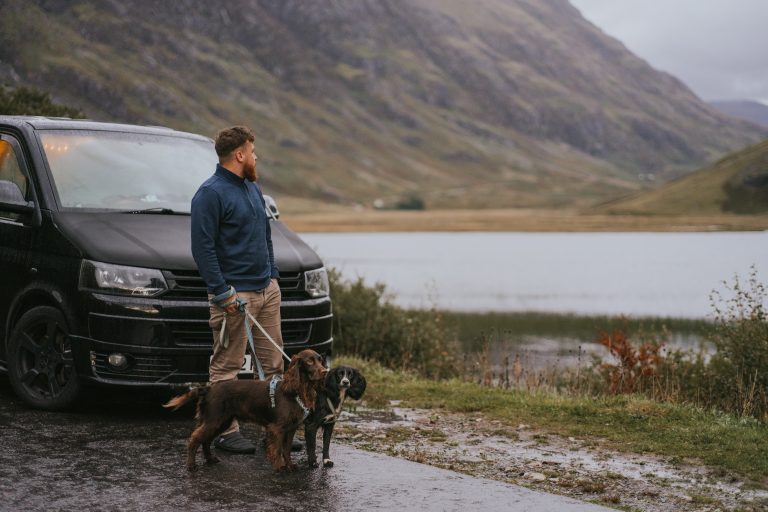 The weather was miserable for the rest of the day and into the evening, so apart from a few toilet breaks for the dogs we spent our time snuggled in the van watching Netflix and eating chocolate – granted it wasn’t what we had in mind, but it was actually nice to have more of a chilled afternoon as we’d been non stop up to this point.